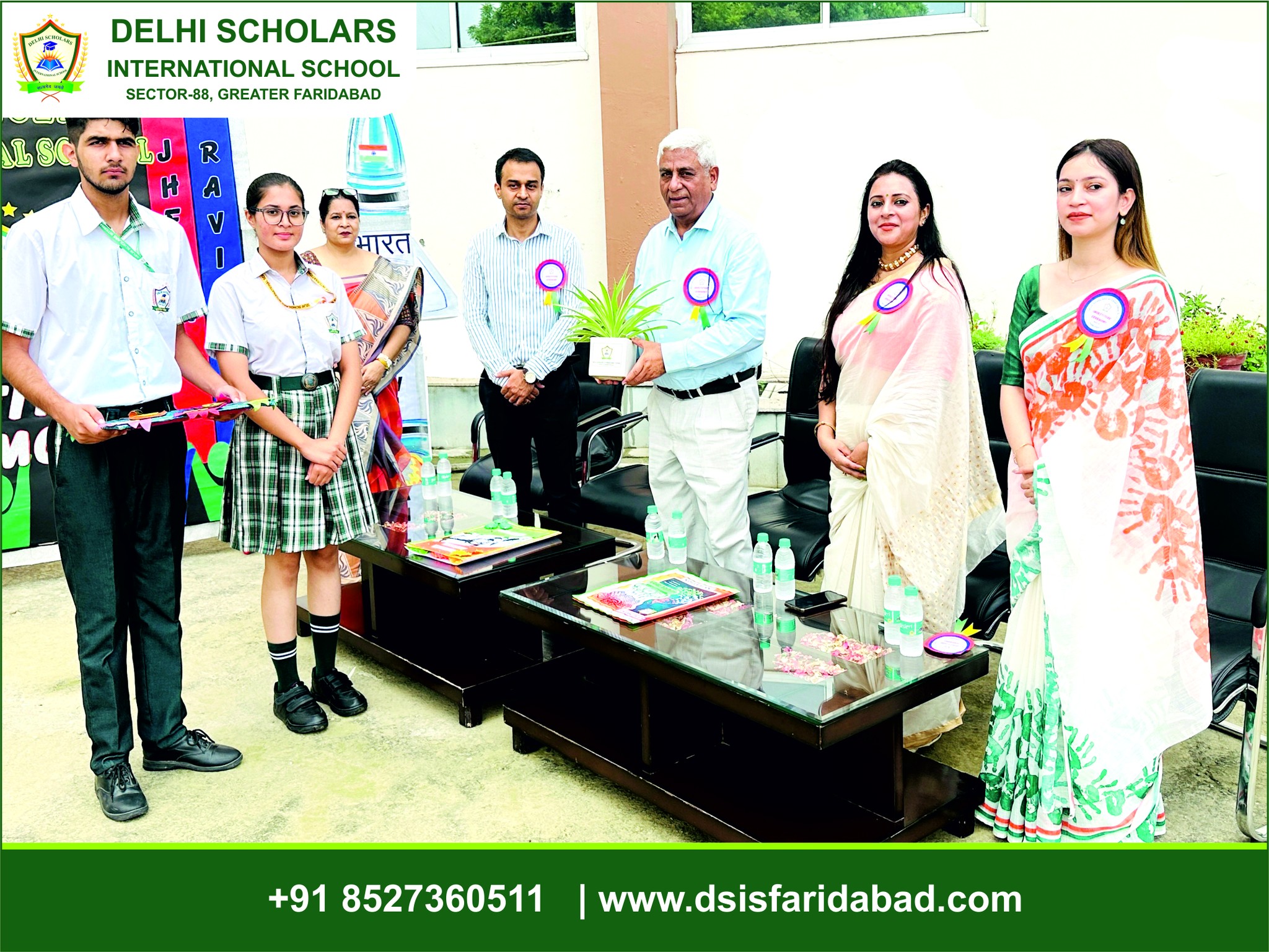 The Investiture Ceremony in Delhi Scholars International School marked a significant milestone in the academic year 2024-25, as we witnessed the transition of leadership from one talented group of students to another. The outgoing leaders symbolically handed over the reins to their successors, signifying the passing of the baton. The newly elected Students Council members, prefects and club members were inducted with each recipient being presented with a badge and certificate. Hon’ble Chairman, Shri T. S. Dalal motivated students with his inspiring words and filled them with enthusiasm and optimism. The Ceremony was concluded with encouraging words by respected Principal, Dr. Sangeeta Kakkar reminding the new leaders to embrace their roles with confidence, integrity and compassion.
